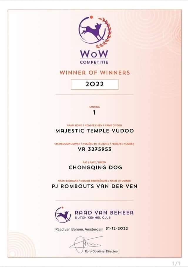 New Champion Of Netherlands 2023 Majestic Temple Lian-Hua (TIGER) NEW CHAMPIONS OF LUXEMBOURG New champion of luxembourg day 1 at the show Federation Cynologique Luxembourgeoise 105 & 106 International dogshow LuxemburgNL.JR.CH. and WOW WINNER 2022Majesticย Temple Black Vudoo EXC 1 intermediarBest FemaleBest of BreedCACLThanks to judge Malo Alcrudo Rafael to the nice words about Vudoo day 2 at the show Federation Cynologique Luxembourgeoise 105 & 106 International dogshow LuxemburgNL.JR.CH. and WOW WINNER 2022EXC 1 intermediarBest FemaleBest of BreedCACLLuxemburg CHAMPION Thanks to judge Lochs-Romans Ricky for the nice words about Vudoo WE HAVE PUPPIES DAM -MAJESTIC TEMPLE DUDU SIRE– MCH MAJESTIC TEMPLE LIAN-HUA WE ARE HAPPY TO ANOUNCE THE BIRTH OF THIS VERY ANTICIPATED LITTER. BORN 21ST MARCH 2023.1 MALEย ย MAJESTIC TEMPLE XINIUย 1 FEMALEย ย MAJESTIC TEMPLE RAYAH ******** NEWS********** JCH MAJESTIC TEMPLE VUDOO WINNER OF WINNERS NETHERLAND 2022